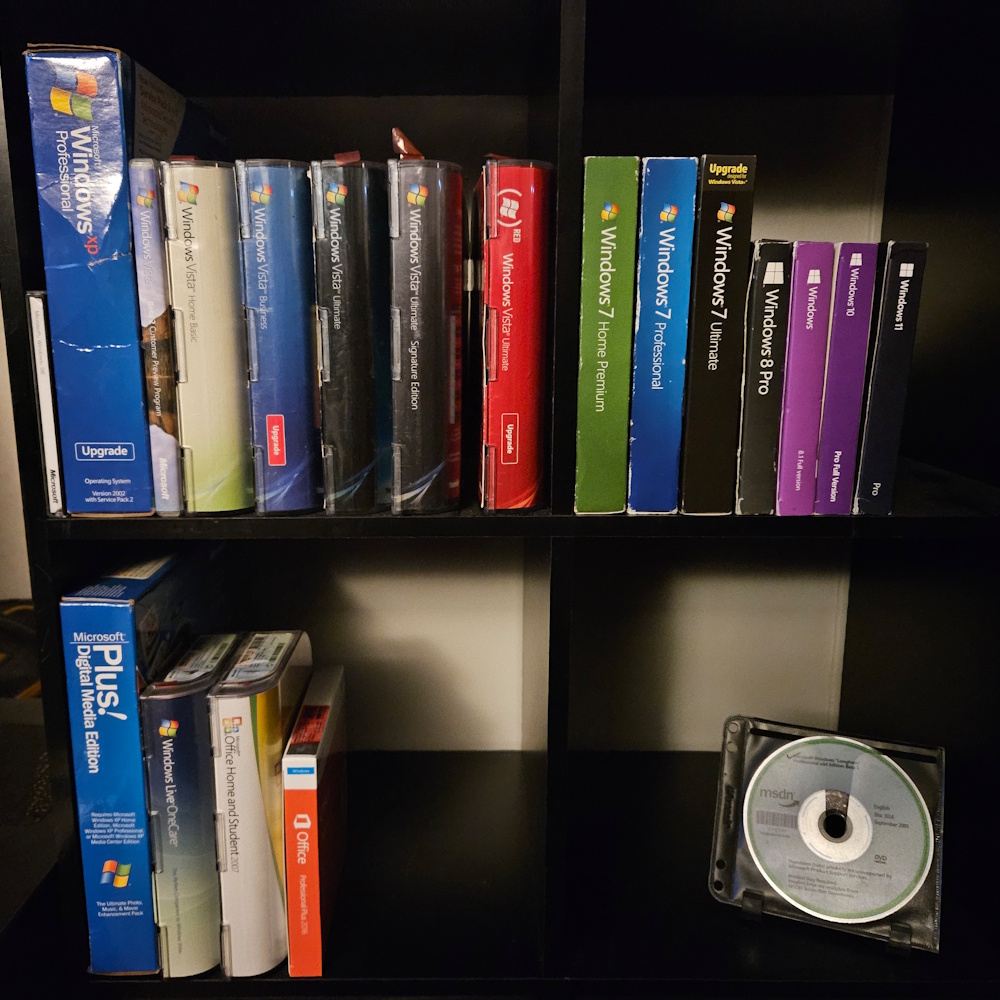 I really love Windows. Even with all of the jank and bad decisions that goes into it nowadays I still cant seem to move away from it cause I am interested in its history and art. With this interest, I have been collecting Windows copies from over the years.